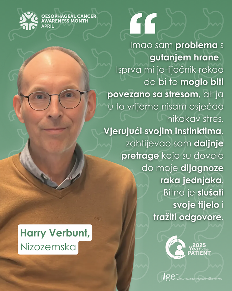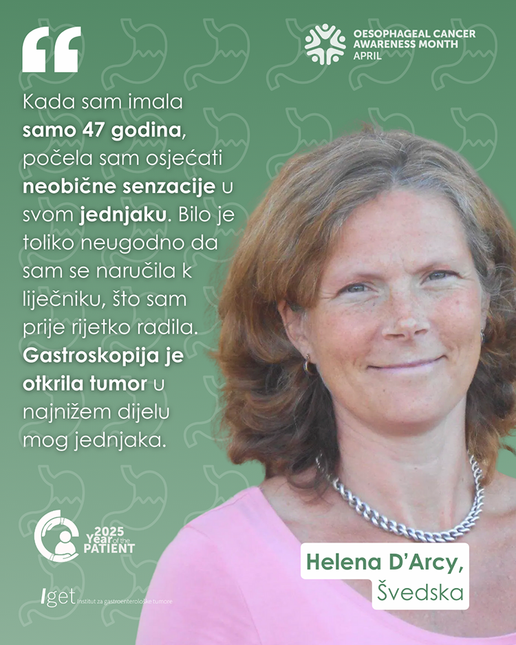 Svake godine oko 53.000 ljudi u Europi dijagnosticira rak jednjaka, bolest koja je teško dijagnosticirati i liječiti, a nažalost godišnje oko 46.000 ljudi umire od nje. Kampanja podizanja svijesti započela je 2021. godine s ciljem boljeg razumijevanja ovog raka i izazova s kojima se pacijenti susreću u pogledu liječenja i preživljavanja. Kampanja uključuje materijale poput informacija o troškovima liječenja i prehrambene savjete za pacijente s rakom jednjaka i želuca.